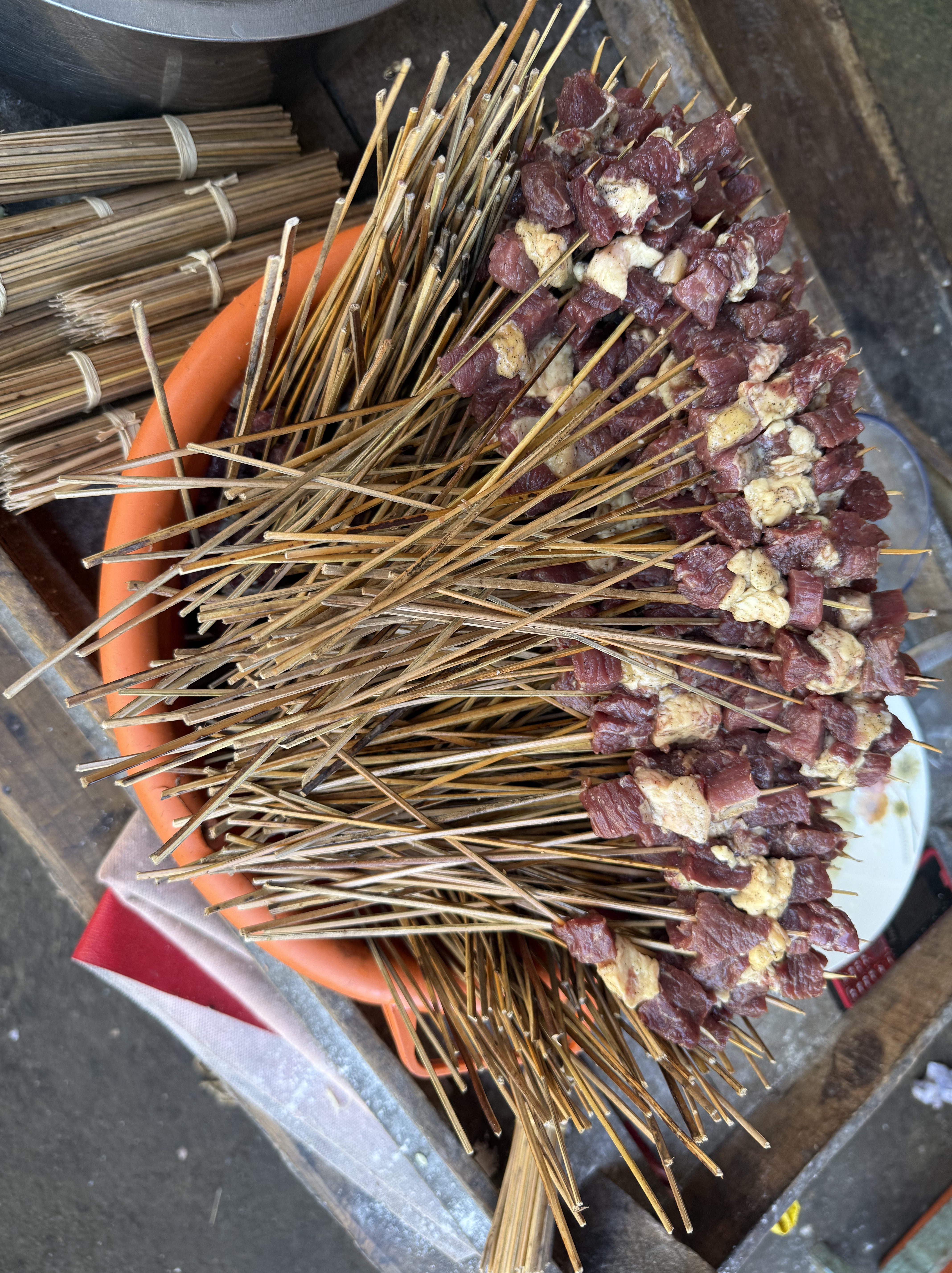 My guide went for the stomach and feet. I was not tempted. A colorful concoction of pasta and vegetables did tempt me, but I dared not. Locals have grown up with this food. They don’t get sick.