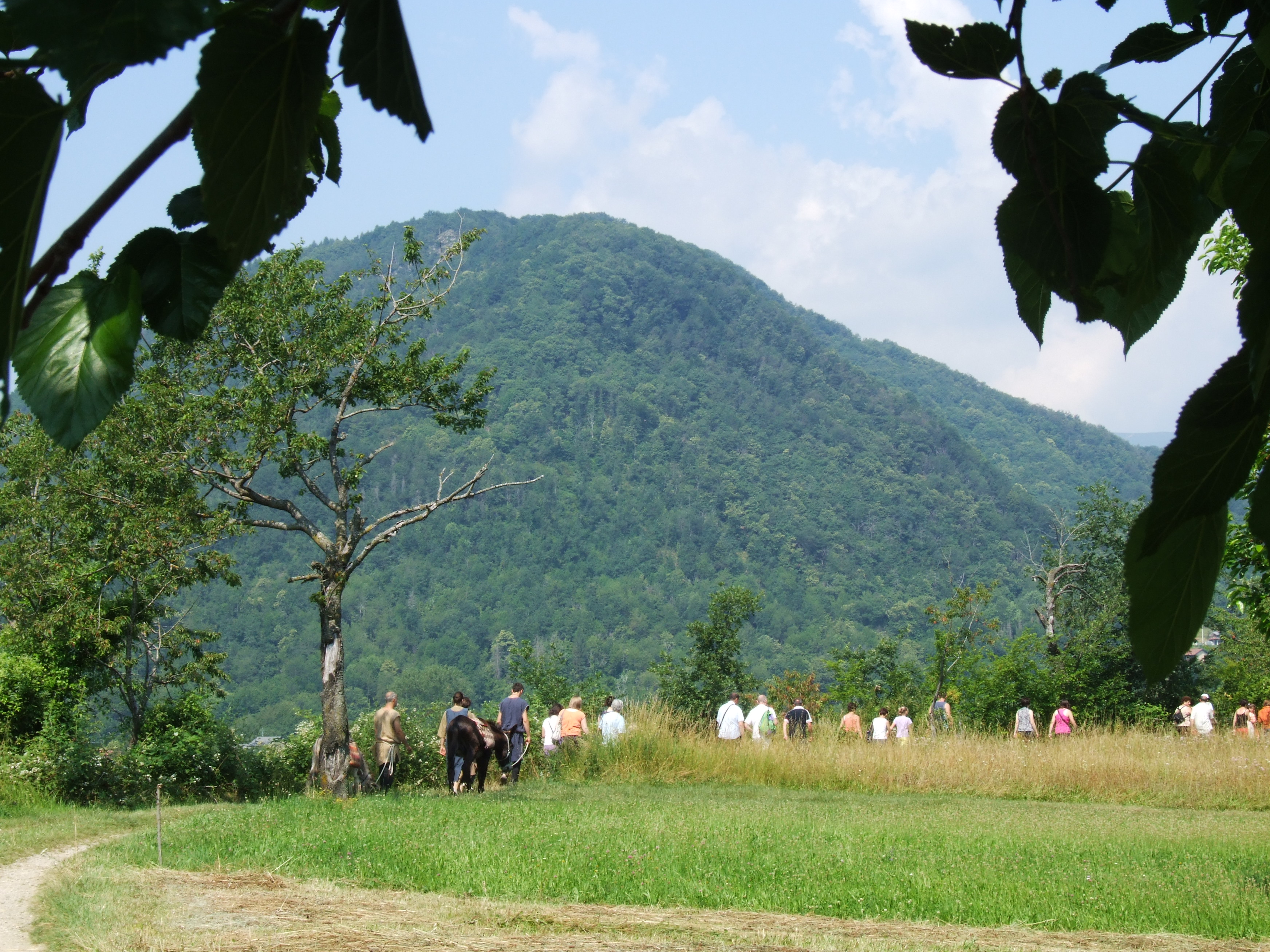 countryside. The mayor of Roccasparvera led a group of Italian speakers. Another guide led those who spoke French. The princess, the peasants and donkeys, and a few others in medieval costumes accompanied the hikers. There were many stops en route for lengthy explanations of the history of the area. At one point a naturalist took over to talk about an enormous ancient chestnut tree.