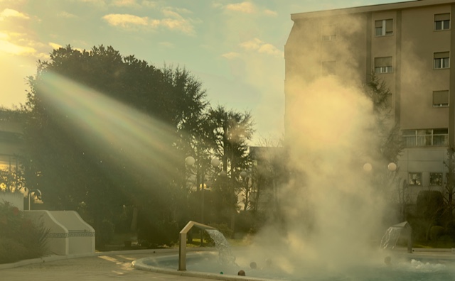 I am a water rat. The mud is pleasant, but I adored the soak in the hot, bubbling thermal water. According to the Abano web site (abano.it), the water makes a long, underground journey from the pre-Alps. Rain enriches it with mineral salts. It is transformed and “classified as salted-bromide iodic hypothermal water.”