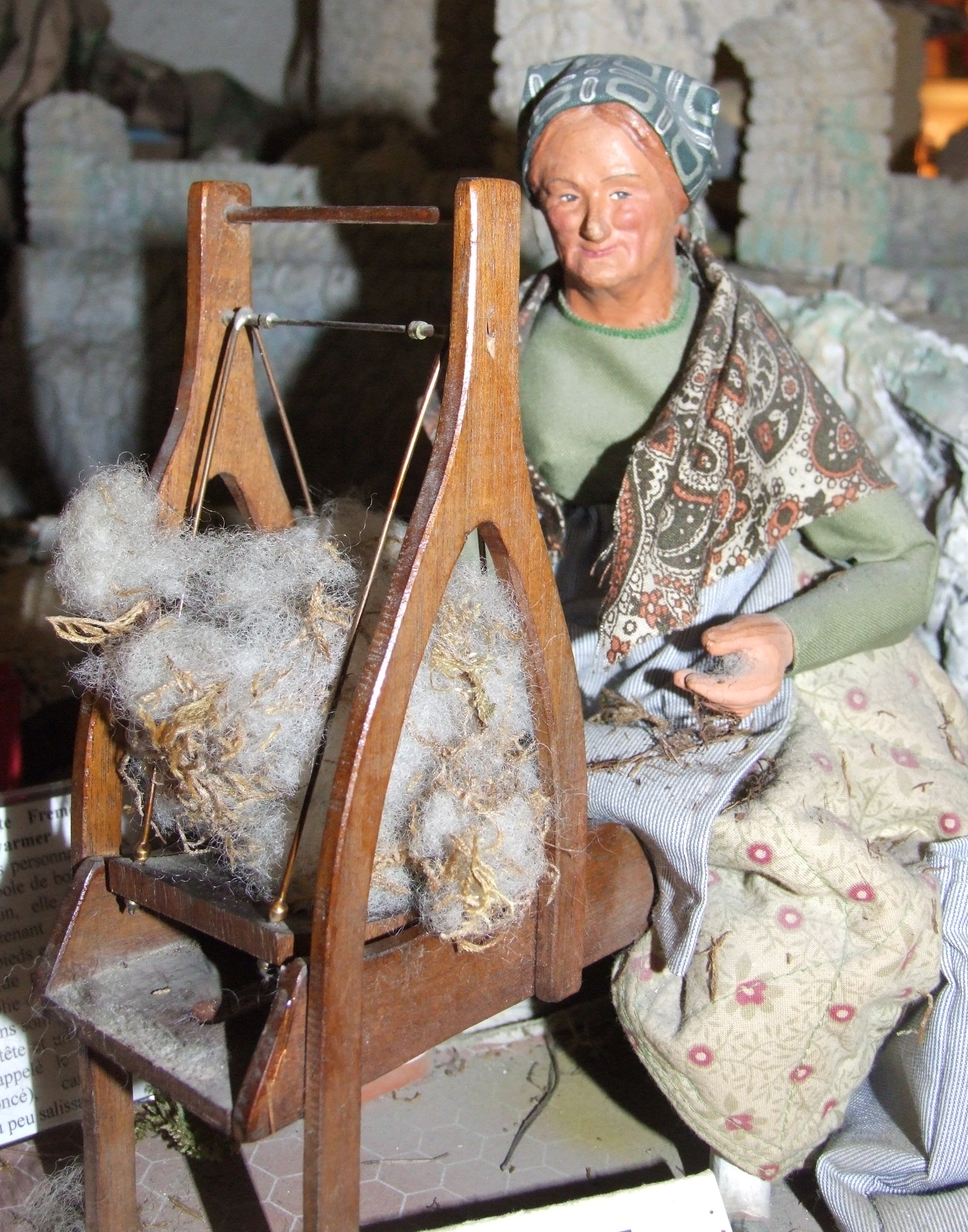 al scenes are on display. The smallest features 39 tiny santons in a walnut shell. The collection includes santons made of terra cotta, wood, wax and bread crumbs. Some of the figures move – a baker shoving bread into an oven, a woman spinning yarn, another doing laundry..