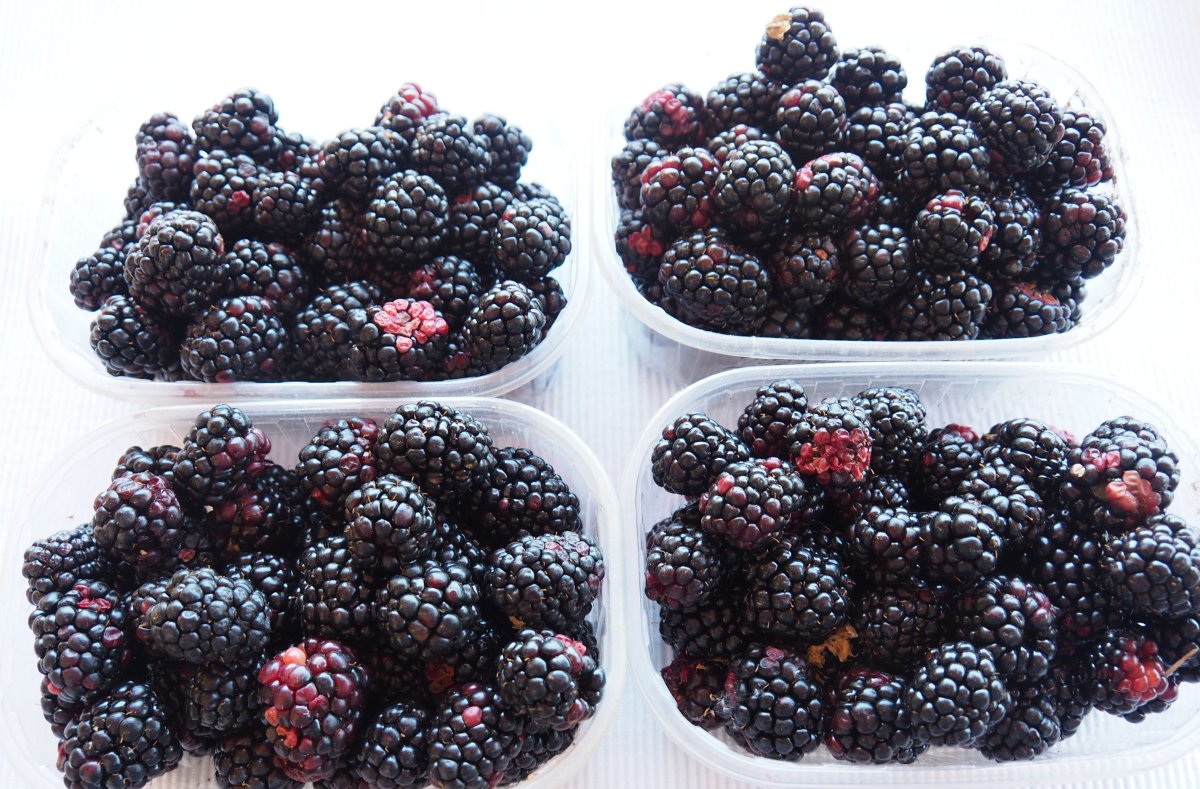 Yesterday he told me the berries are about finished for the season. I bought all five containers he had, and froze the contents of four. (google “freezing blackberries” for instructions).