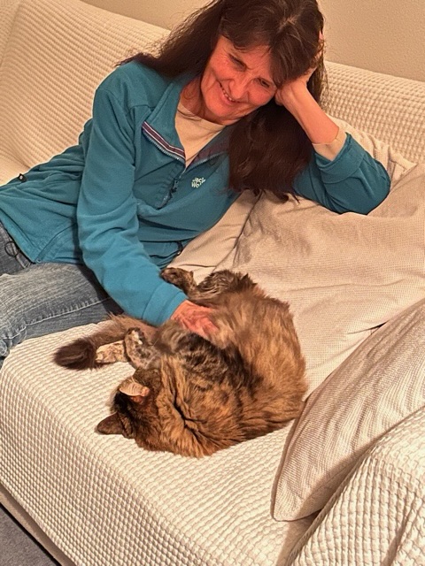 Erika with my Simba who loves tummy rubs.