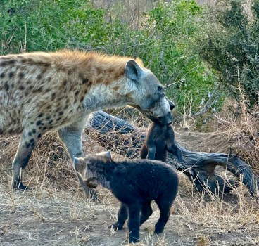 Previous Image Next Image IMG_3787 Another hyena mom with puppies, these a bit older. Guide Landon said hyena puppies are his favorite baby animal. They are adorable.