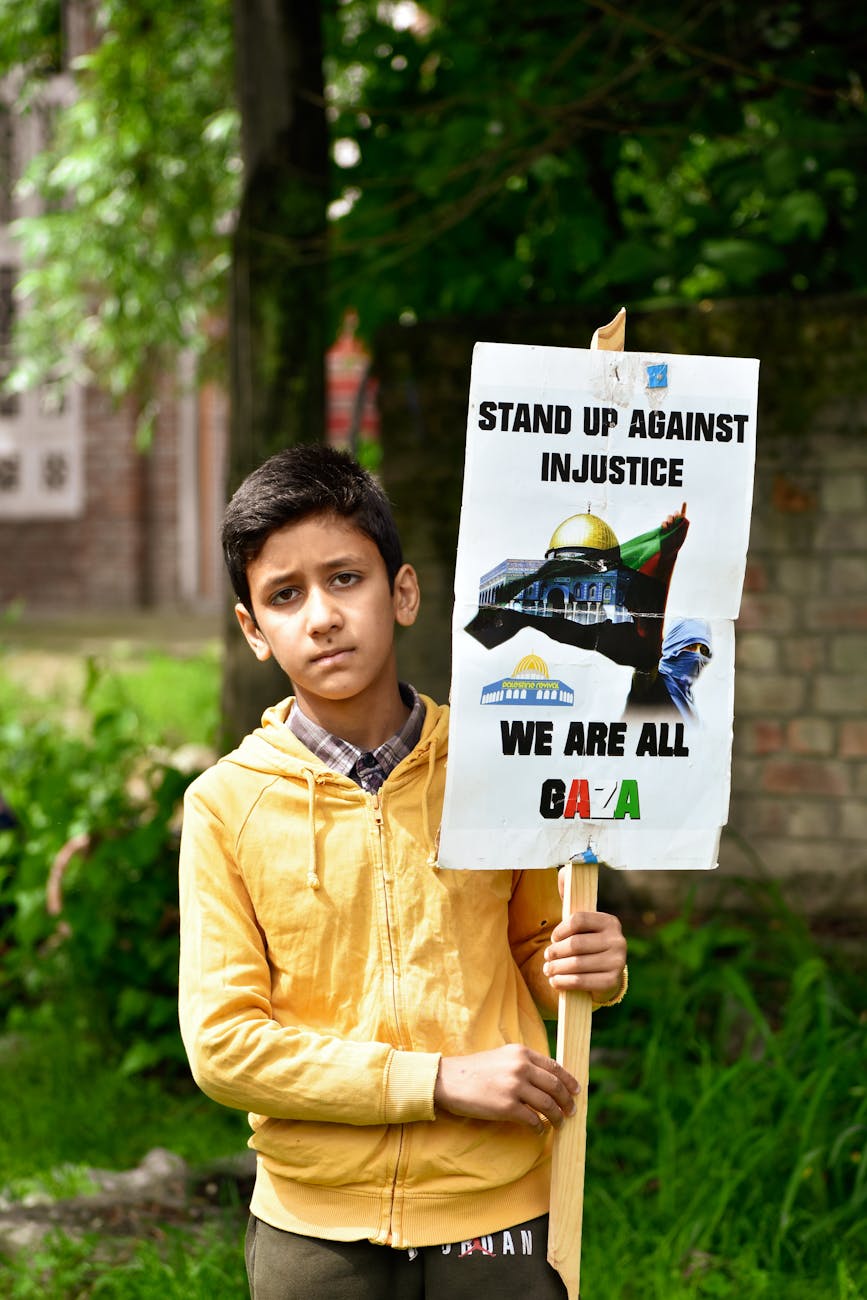 Previous Image Next Image boy holding political placard about gaza Photo by Hurrah suhail on Pexels.com
