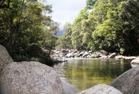 I am still happy I had the chance to dive again, but what really made me happy was a swim in an idyllic pool at the Mossman Gorge in the Daintree National Park not far from Port Douglas. For me, swimming is right up there after skiing. This body of clear, cool water with huge granite boulders along the sides, as well as in the middle, surrounded by lush jungle, was a bit of paradise. The pool is in a section of the Mossman River, touted as “without crocodiles.” But, there were lots of birds, including a wild turkey poking among the picnickers along the shore.