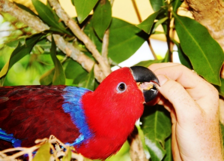 We saw more feathered friends at Habitat, a fun place where you can dine in a large enclosed area among birds, small and large and brightly colored, who fly above, prance around on the ground, squeak, chirp, sing, and screech. A caretaker walks by and gladly perches a bird on your shoulder. Habitat also has more wildlife: kangaroos, koalas, wallabies, crocodiles.