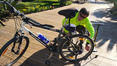 Then came the Belgians, Patrick and Chantal, with two motorcycles and two bicycles towed behind their car. We were amazed. Due to the heat, they spent most of their time on the motorcycles. One of the bicycles was electric, but since the terrain here is anything but flat, they preferred their motorcycles. They took long excursions, almost every day during their two-week sojourn.