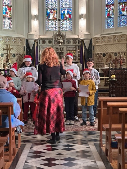 Arabella (back to camera unfortunatley) leads her pupils in Christmas carols