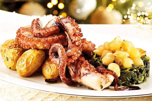 For Portuguese Christmas Eve: boiled cod and vegetables.Catarina and nephew DanyRoast octopus is a Christmas delicacy in Portugal.