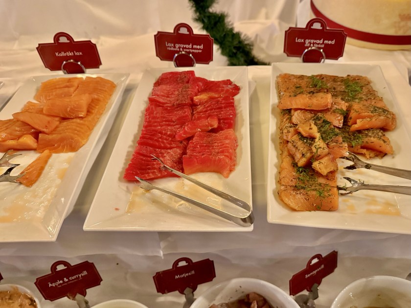 Coming soon, a guest blog by Swedish friend Lars on the Julbord, “the king-sized jumbo version of the famous smorgasbord.” It’s a food orgy, a mind-boggling, lavish assortment of tastes -and plenty of vodka. Don’t miss it.