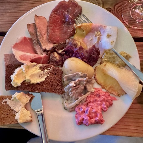Following is a guest blog with photos by Swedish friend Lars who recently journeyed to his home country to celebrate his sister’s birthday. It was more than an over-the-top birthday party: the Julbord, a holiday overdose of food – and akvavit (a popular and strong Scandinavian spirit. See below for more on this beverage). The Julbord is a must at Christmas, but can be repeated during the festive season including on New Year’s Day. The eating can go on all day, Lars says. “It’s supposed to be drawn out. It’s an orgy. You need time to recover.” He recalls that housewives used to “slave for two weeks” to prepare the food, but many now celebrate in restaurants.