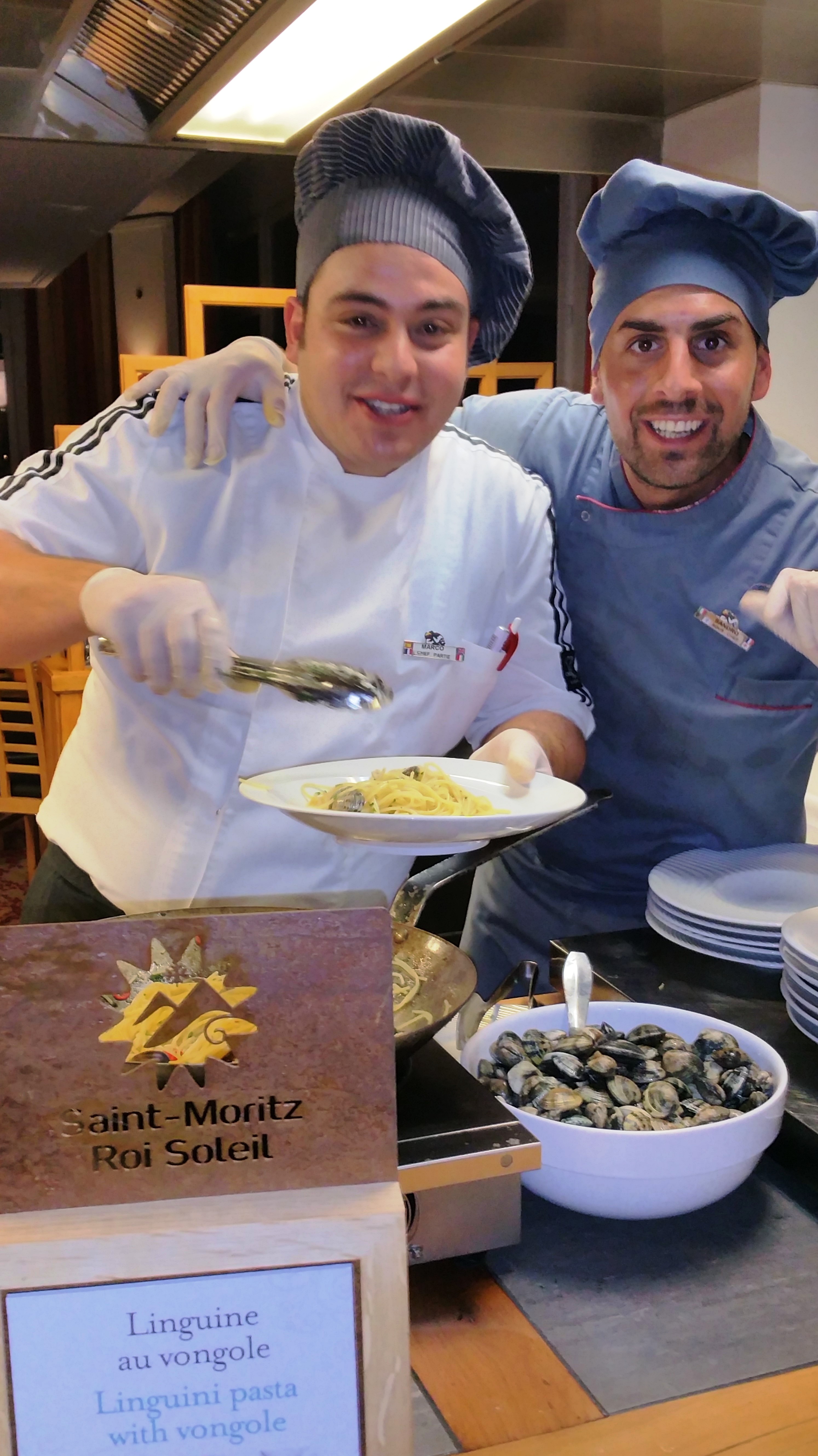 egg. I had another cheese bombshell, a Risotto speciality at the Becs de Bosson restaurant. Parmesan is pounded smooth in a big bowl as you watch. Grappa is added, then the hot rice. That was my Swiss cheese farewell. I savored it all, but by then I had had enough cheese and was ready for a return to fish from the Med.