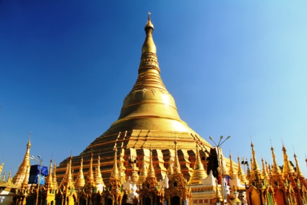Another mind-boggling spectacle, this gilded temple complex in Yangon is the county’s most–visited sight, as well as a pilgrimage site. Sixty-four lesser pagodas and numerous shrines are clustered around the golden dome (three tons of gold) which rises 322 feet above its base. According to a legend, it is 2,500 years old. Archeologists, however, think it dates to sometime between the 6th and 10th centuries, but was rebuilt numerous times in succeeding years. At the top of the dome is a diamond orb, a golden sphere studded with 4,351 diamonds. And, at the very top, a 76-carat diamond.