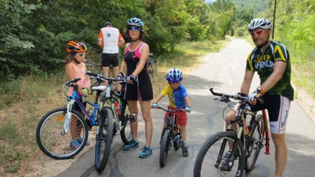 More bicycles next – a Czech family of four with five bikes. Jakub and Katarina and children Lara, 9, and Luka, 5, were back for the second time. We were overwhelmed with their bicycle prowess two years ago when they set out day after day, all day on bikes, albeit Katarina towing Luka in a carriage and Lara’s bike sometimes attached to her father’s bike. Lara now rides on her own, and Luka rides the bike that can be attached to Jakub’s . We rode with them one day – lots of fun.